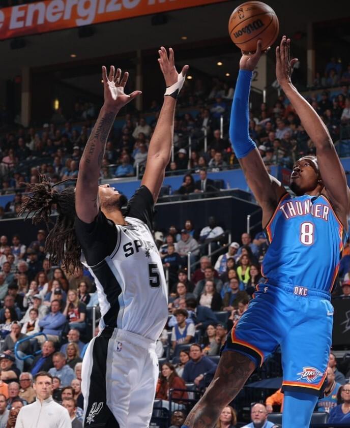 1月14日,NBA常规赛继续进行,雷霆坐镇主场迎战马刺队。在这场西部前2名之间的直接对话当中,雷霆队在第三节比赛发力将分差拉开,最终他们在主场以119-98本赛季首胜马刺,取得了一波4连胜。